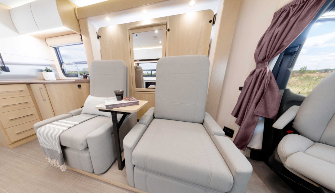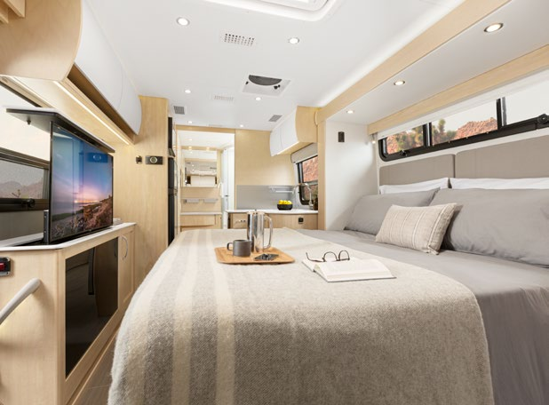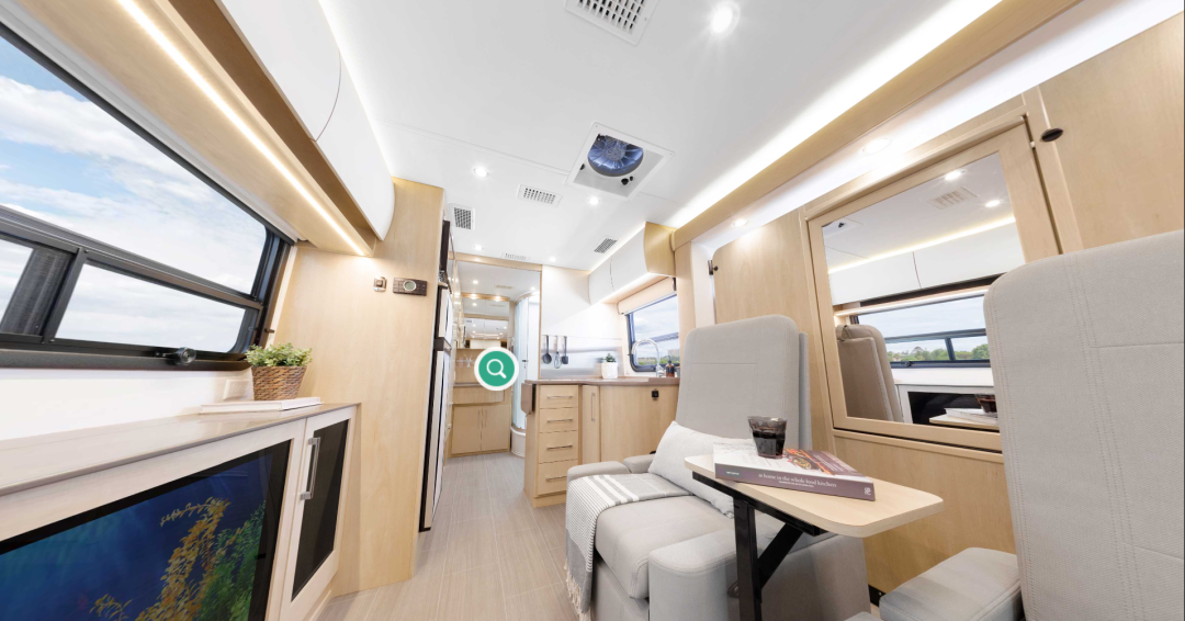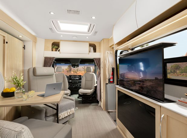 小伙伴们,今天小编带大家来看这款价格超过百万的Unity Murphy Bed房车,这款房车的设计非常炫酷,会客厅采用了独特的翻转床设计,拥有更多使用功能,休闲的同时也可以办公,同时还配备了40英寸超大智能电视,纵享沉浸式观影体验。