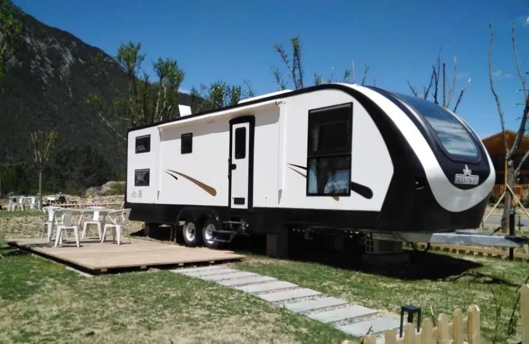 熟悉房车露营的朋友应该知道,在露营地除了各种传统的房车外,经常还能看到一种常驻的大型拖挂式房车,也被大家称之为营地房车,这类房车的空间更大,舒适度也大幅增加;