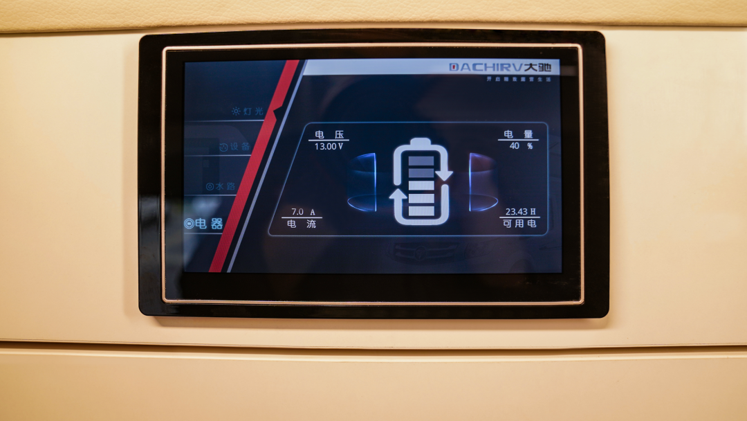 电力系统标配:3000W充逆变一体机、800W太阳能板、800AH房车专用锂电池。