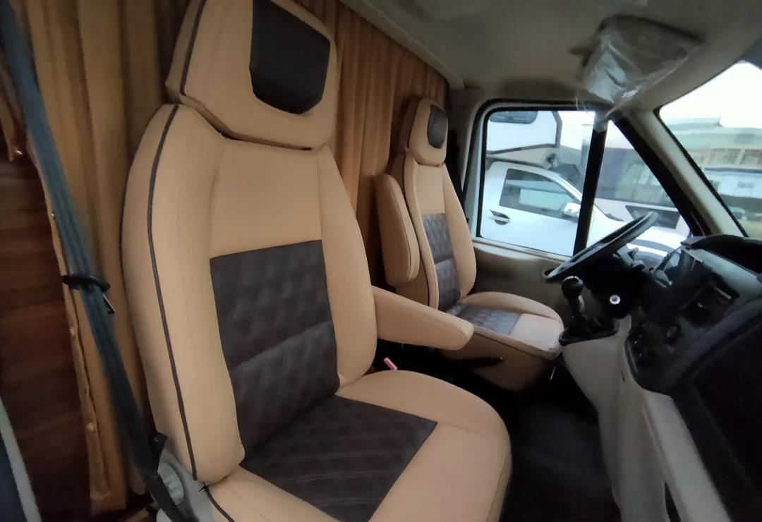 动力方面这款车基于福特新世代全顺长轴底盘打造而成,轴距达到3750mm,搭配全承载式的车身与双后胎,行车/驻车时车身更加的稳定;随底盘搭载一台福特PUMA 2.2T进口柴油发动机,功率100KW,扭矩可达350N.m,噪音小,动力强劲;而在传动系统方面,整车标配格特拉克6速手动挡的变速箱,驾驶乐趣更强,适合老手或追求操作体验的车友,同时也支持选装自动挡,方便新手驾驶;