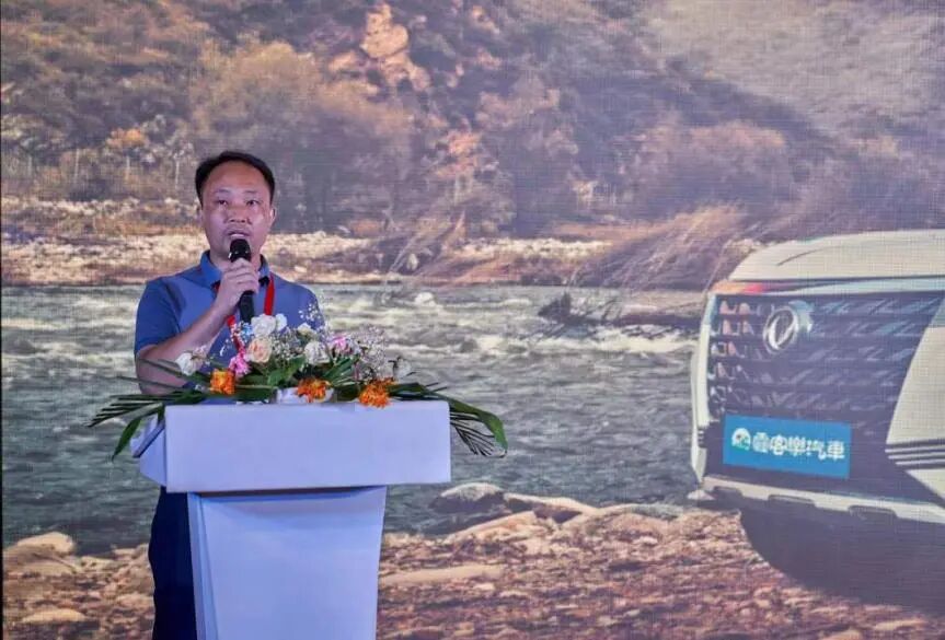 在霞客乐新品发布会上,霞客乐汽车总经理胡柏林热情洋溢的致辞。