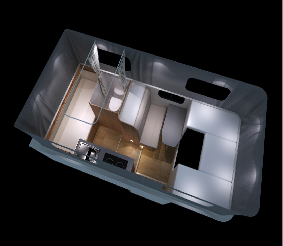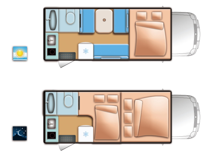 顾名思义就是在车的尾部设计横向的床位,其他布局配合这个固定床来设计,这样的好处是空间利用最大化。