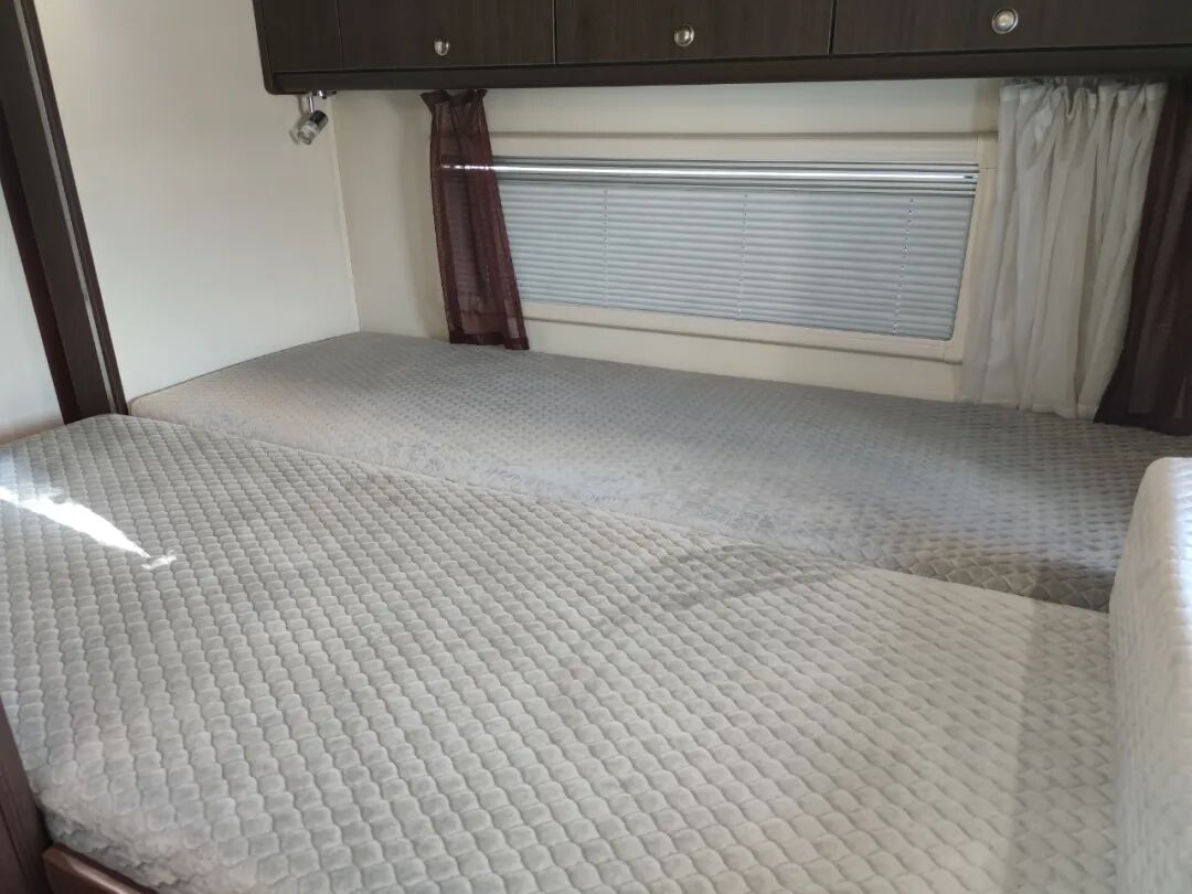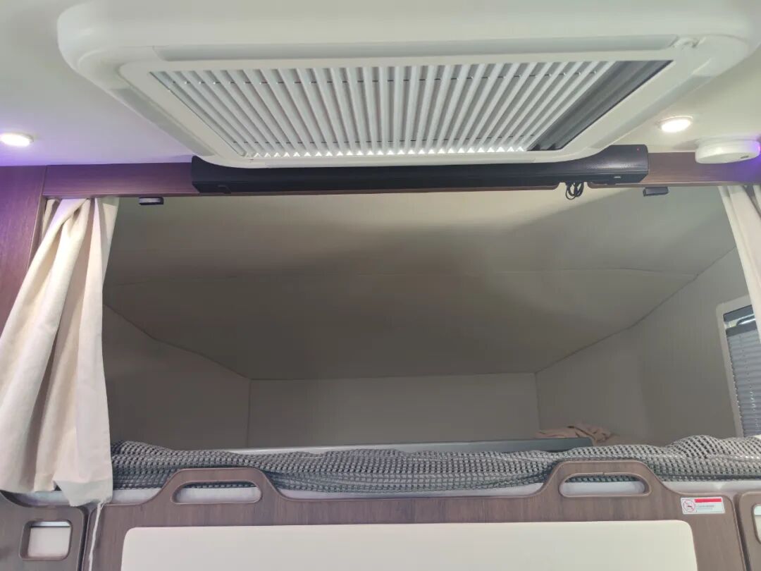 另一张固定休息区便是驾驶舱上方的额头大床;搭配卡座拼床,整车共有三张床位,轻松满足4-5人睡眠。