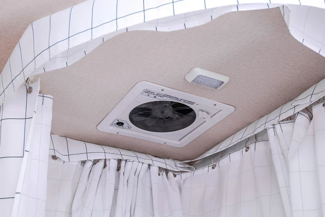 生活区采用浅灰色内饰装饰,时尚温馨,搭配E0级环保组合家具+房车专用地板革,打造绿色健康的旅居生活环境;冷暖风系统配有12V分体空调、5kw驻车暖风等,调节生活空间温度。