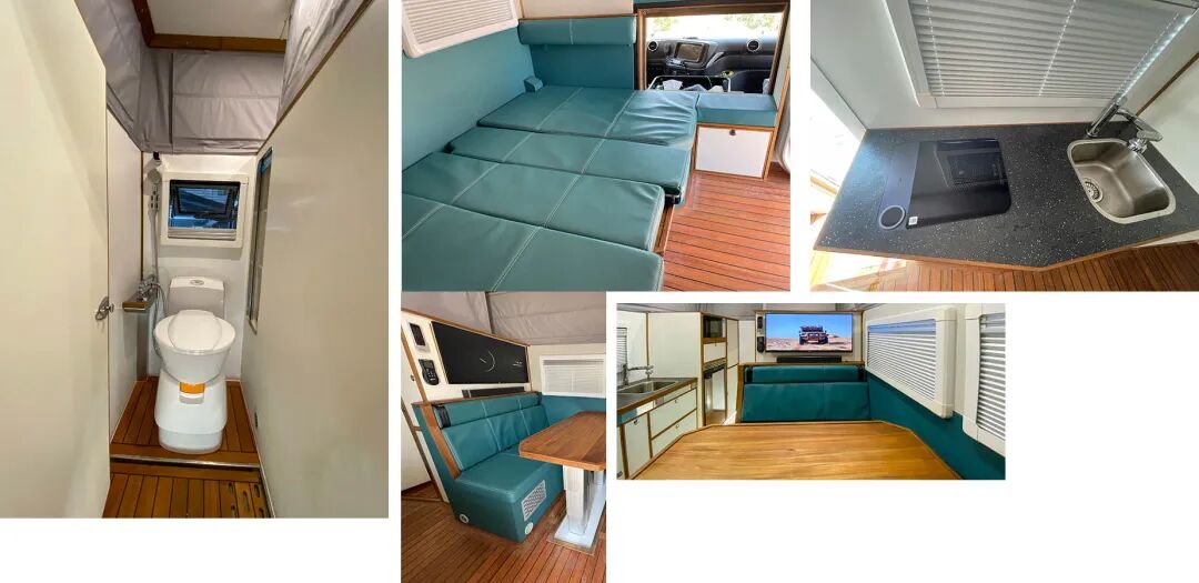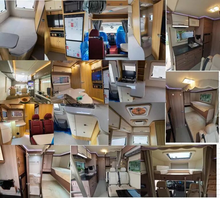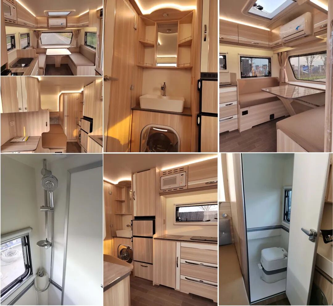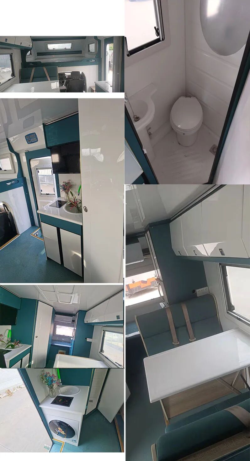 牵引杆深入量为50mm,连接器最大负荷100kg;车顶部封闭,不可开启;根据内部布置选装开窗位置及大小,选装舱门位置及大小;选装遮阳棚;选装外观样式,选装内饰样式,选装顶部装置安装位置,选装轮辋样式;该车为非乘用车,行驶途中不载客,厢体内安装有床铺、桌柜、卫生设施等旅居车设备。