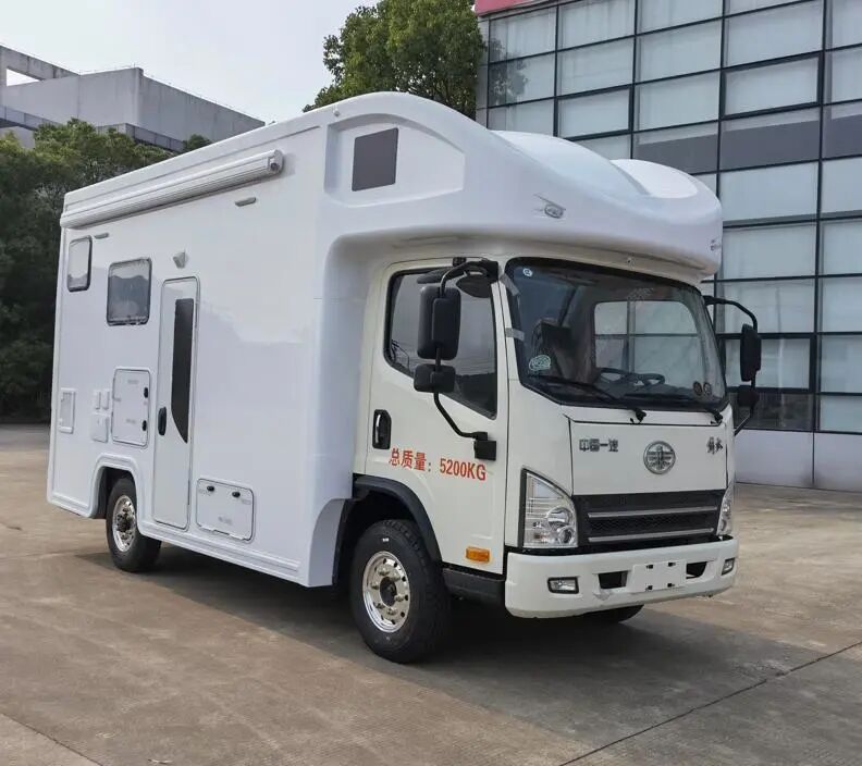 1、侧防护装置为裙边结构,材质为玻璃钢,离地高度:305mm;后防护装置材质为Q235A和玻璃钢,连接方式为螺栓连接,后防护装置的断面尺寸(高×宽)mm:100×50,离地高度:400mm,连接方式为螺栓连接;2、配备桌椅、厨具、睡具、卫生设施等旅居生活设施;3、选装车辆内饰。