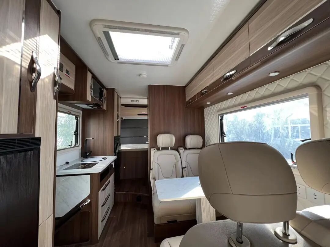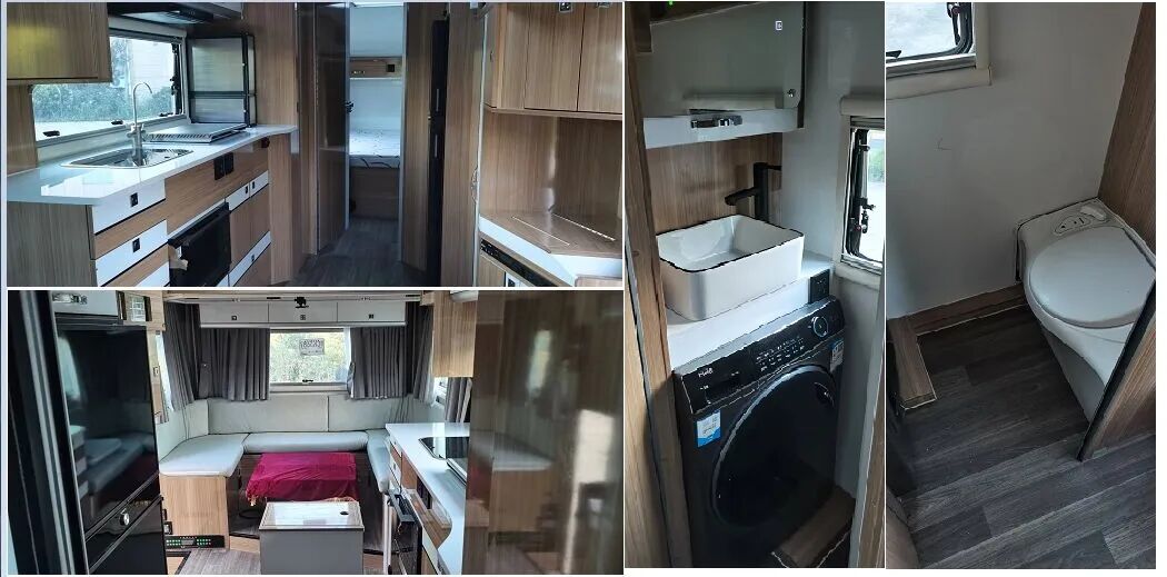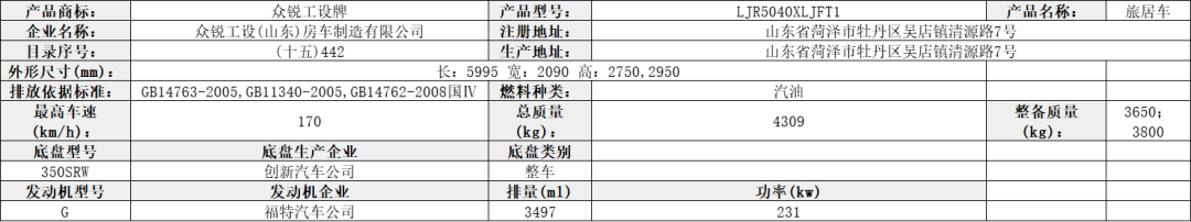 车辆配备卧具、厨具、卫生间等旅居生活设施,用于旅居;ABS型号:MGH-100,生产企业:万都底盘部件(苏州)有限公司;发动机最大净功率150KW;选装牵引连接装置接口(准拖挂车总质量为2500kg);该车选装直接供电式ETC车载装置。