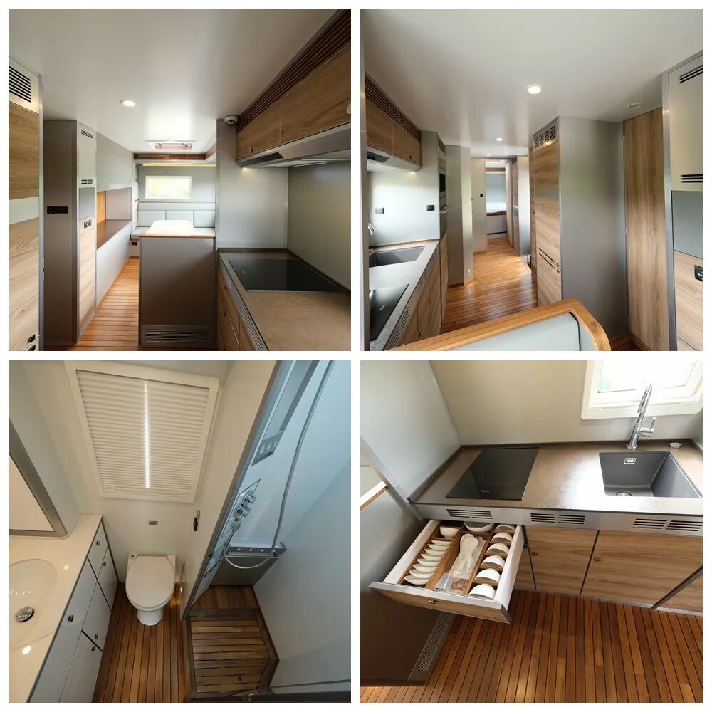 1.发动机最大净功率425kW;2.侧防护为裙板结构,材质为高强度铝合金,离地高度为545(mm),后防护为Q355B钢,截面尺寸:120X60(高X宽,单位:mm),离地高度为:490(mm),连接方式为:螺接;3.ABS系统控制方式:4通道;ABS系统控制器型号:EBS4+;ABS系统控制器生产企业:WABCO;4.车厢内部配备桌椅、床、厨具、洗菜洗脸池、马桶、淋浴、空调等生活设施。