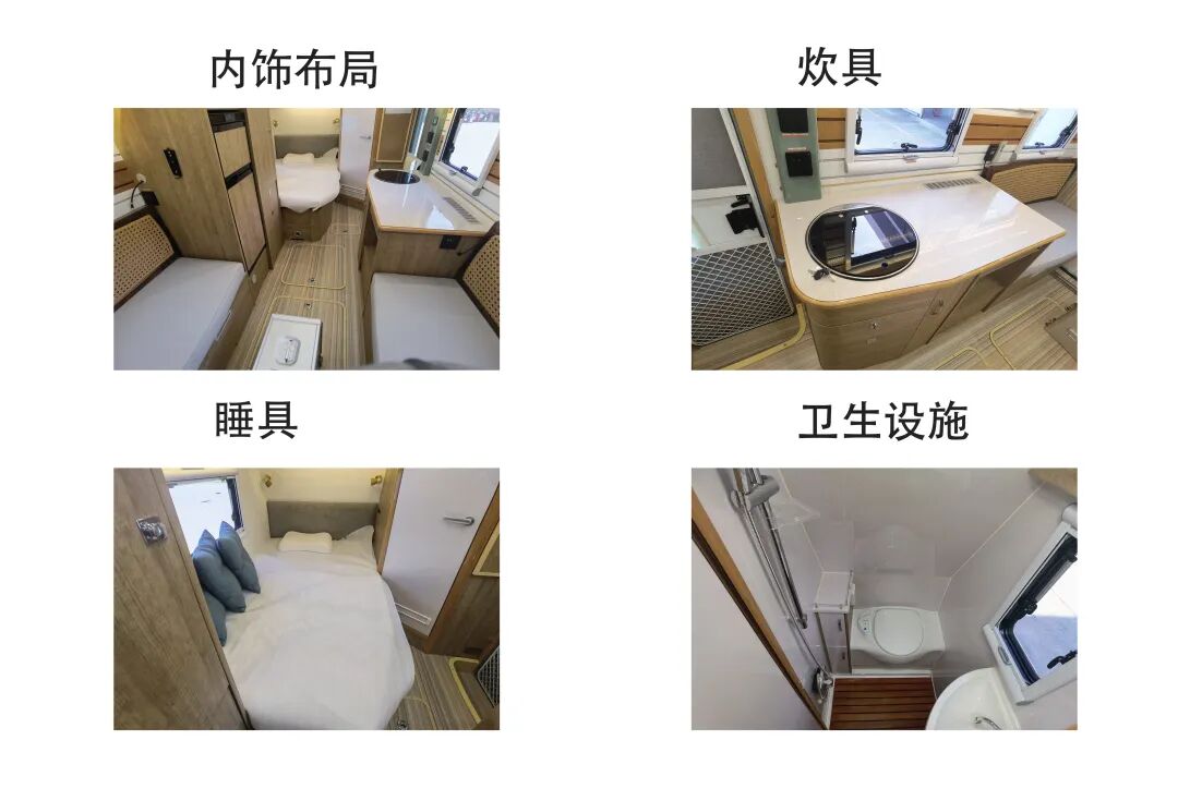 牵引杆深入量为60mm,连接器最大负荷200kg;车顶部封闭,不可开启;选装内饰样式,选装侧门及窗户安装位置;该车为非乘用车,行驶途中不载客,厢体内安装有床铺、桌柜、卫生设施等旅居车设备。