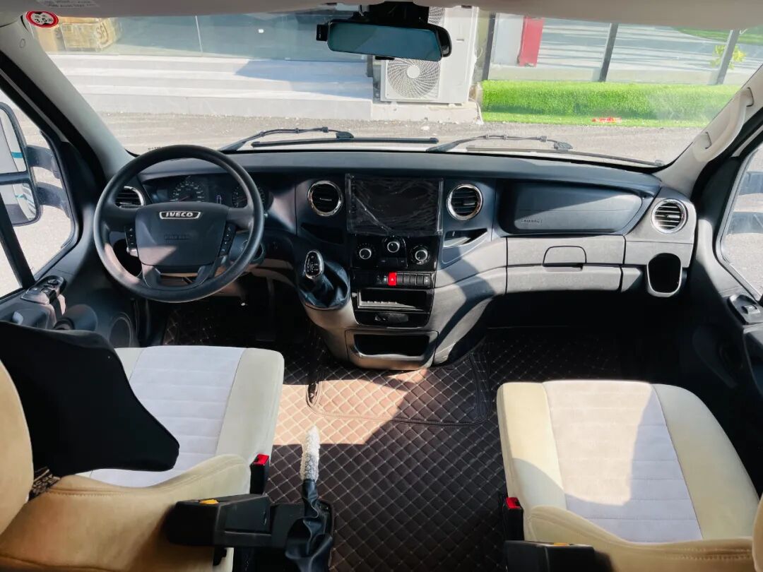 驾驶舱有着非常开阔的视野,便于驾驶员观察行车环境;主副驾配备气悬座椅,副驾驶可旋转设计;行车方面配有丰富的辅助、安全设施,加强行车驾驶过程中的舒适度;主副驾驶座椅中间的贯通式过道便于日常进出后方生活区。