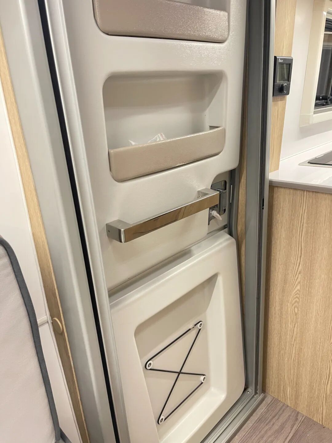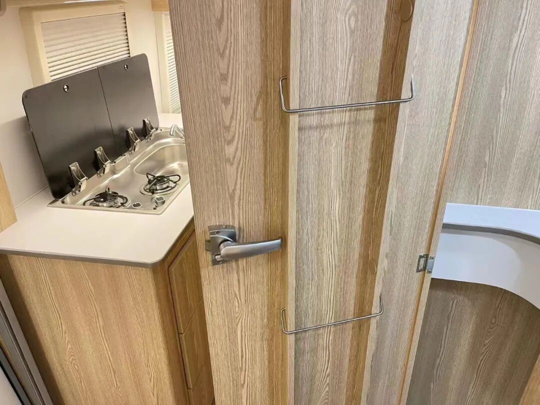 房车专用乘客门内侧设有扶手、储物格等,便于日常生活使用。