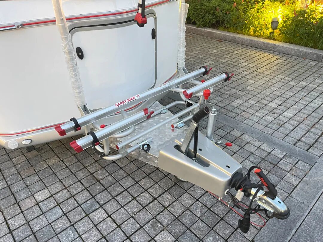 燃气灶油箱安装在底盘下,加油口位于车头前舱处;车头部分还能根据个人需求选装自行车架,丰富驻车时的户外娱乐生活。
