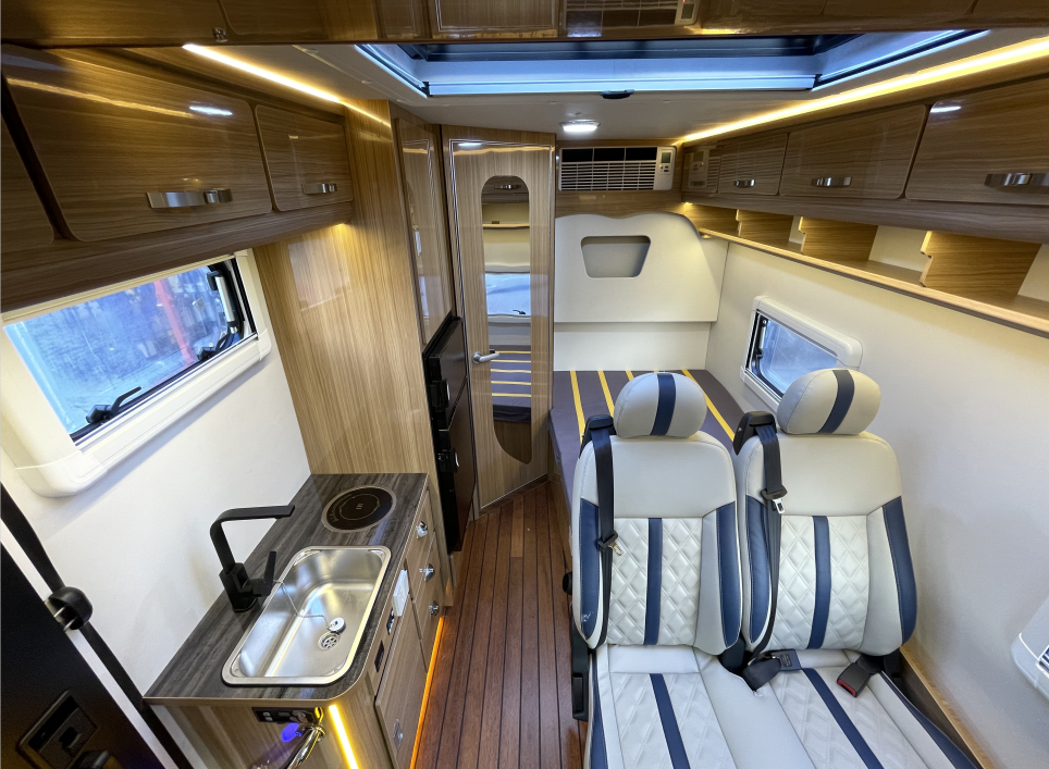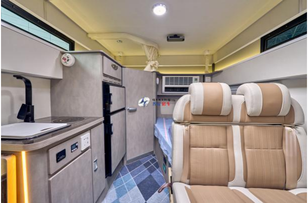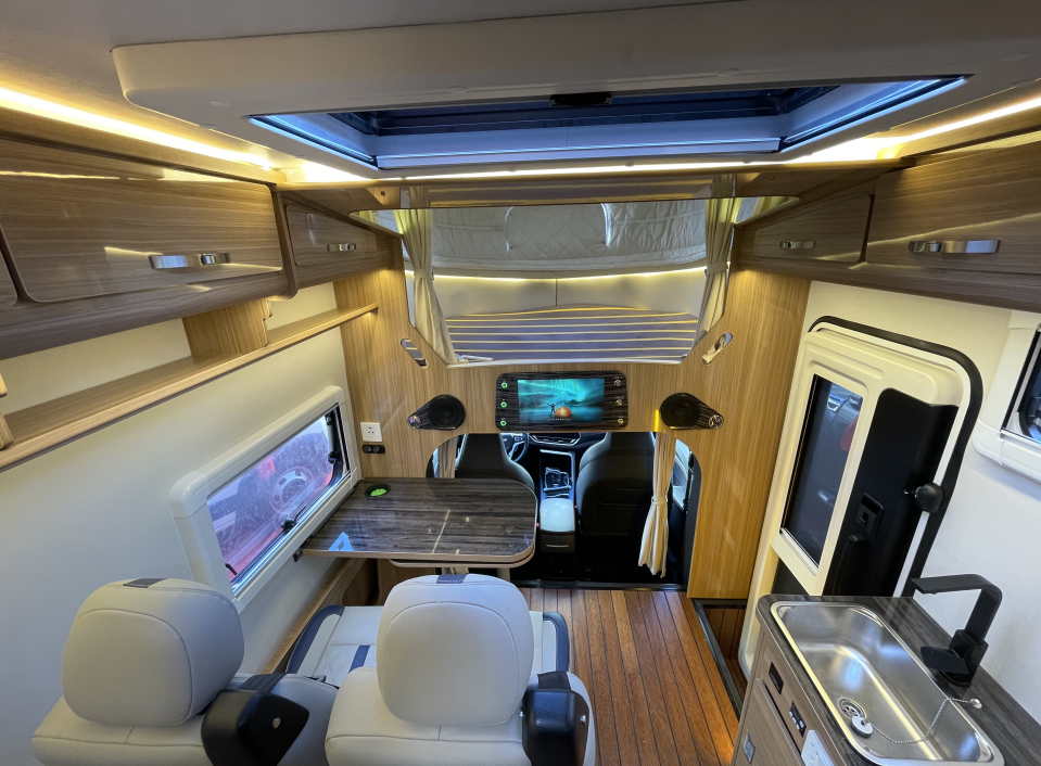 MAXUS V90亦商亦居轻客底盘,宽体商务房车的优雅姿态,可定制选装升顶的个性化布局房车,顶部斜升顶大床,四座四卧,理想商旅居家体验。