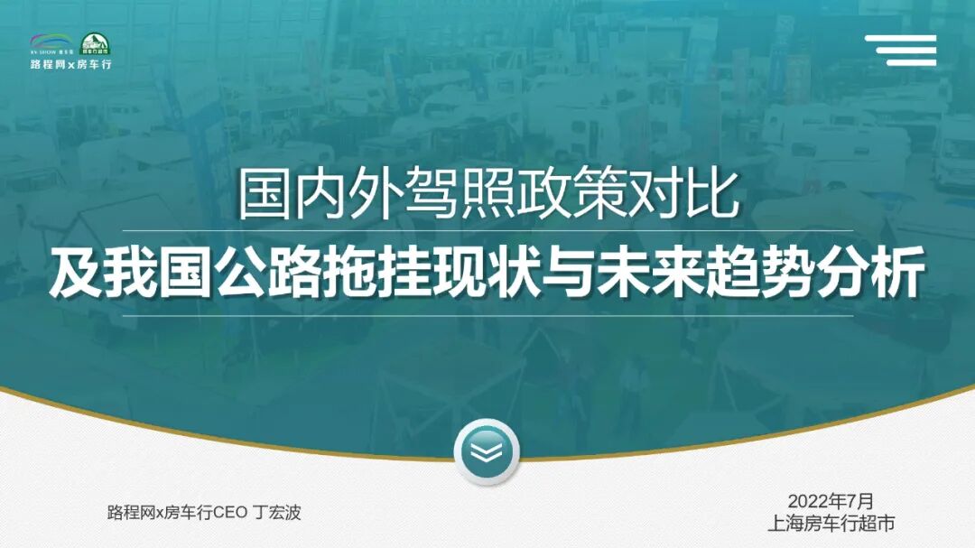 会上,路程网x房车行创始人-丁宏波先生为大家带来以“国内外驾照政策对比及及我国公路拖挂现状与未来趋势分析”为主题的精彩演讲。
