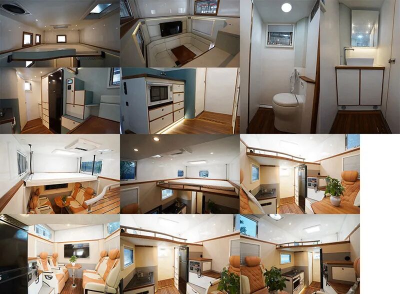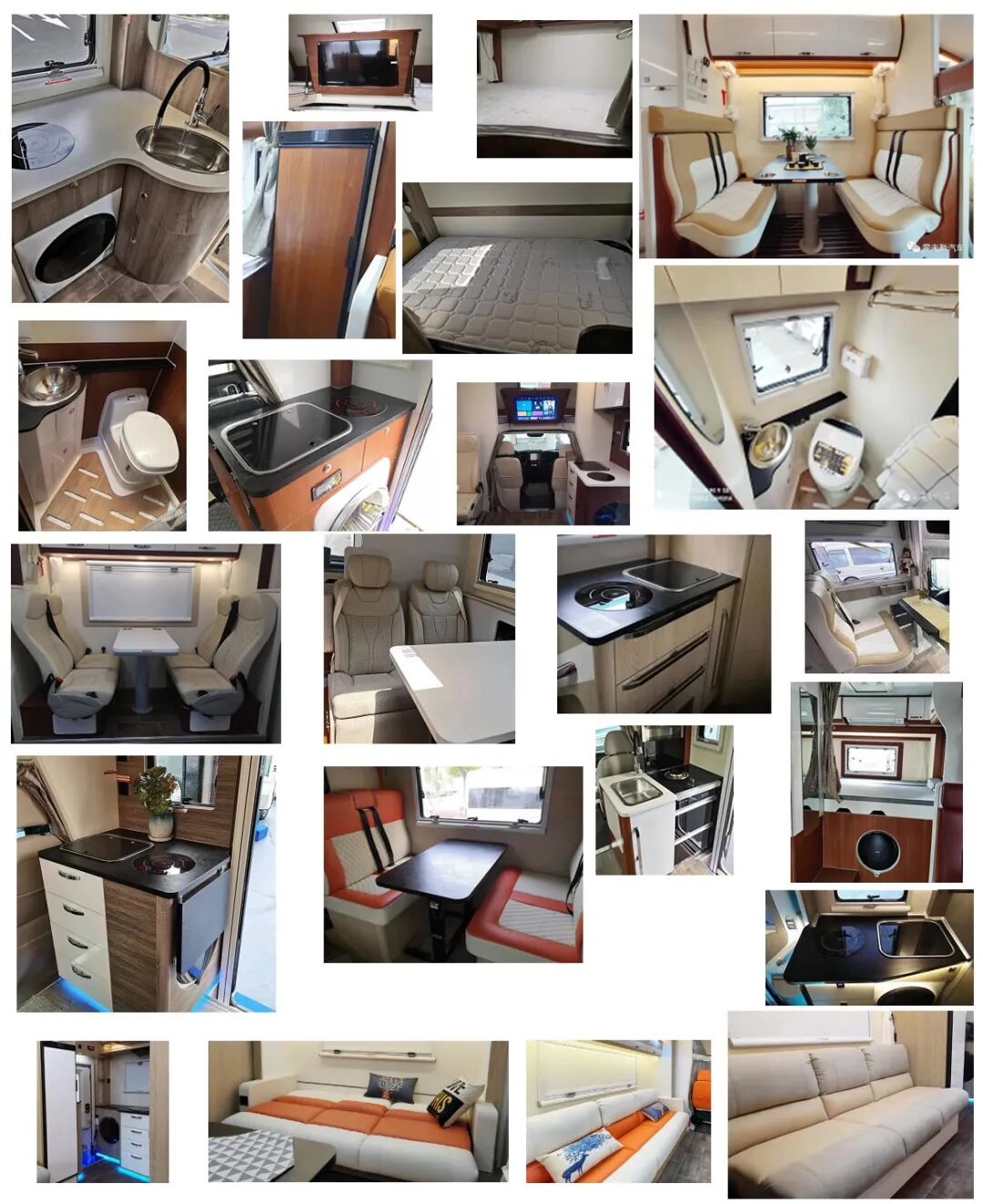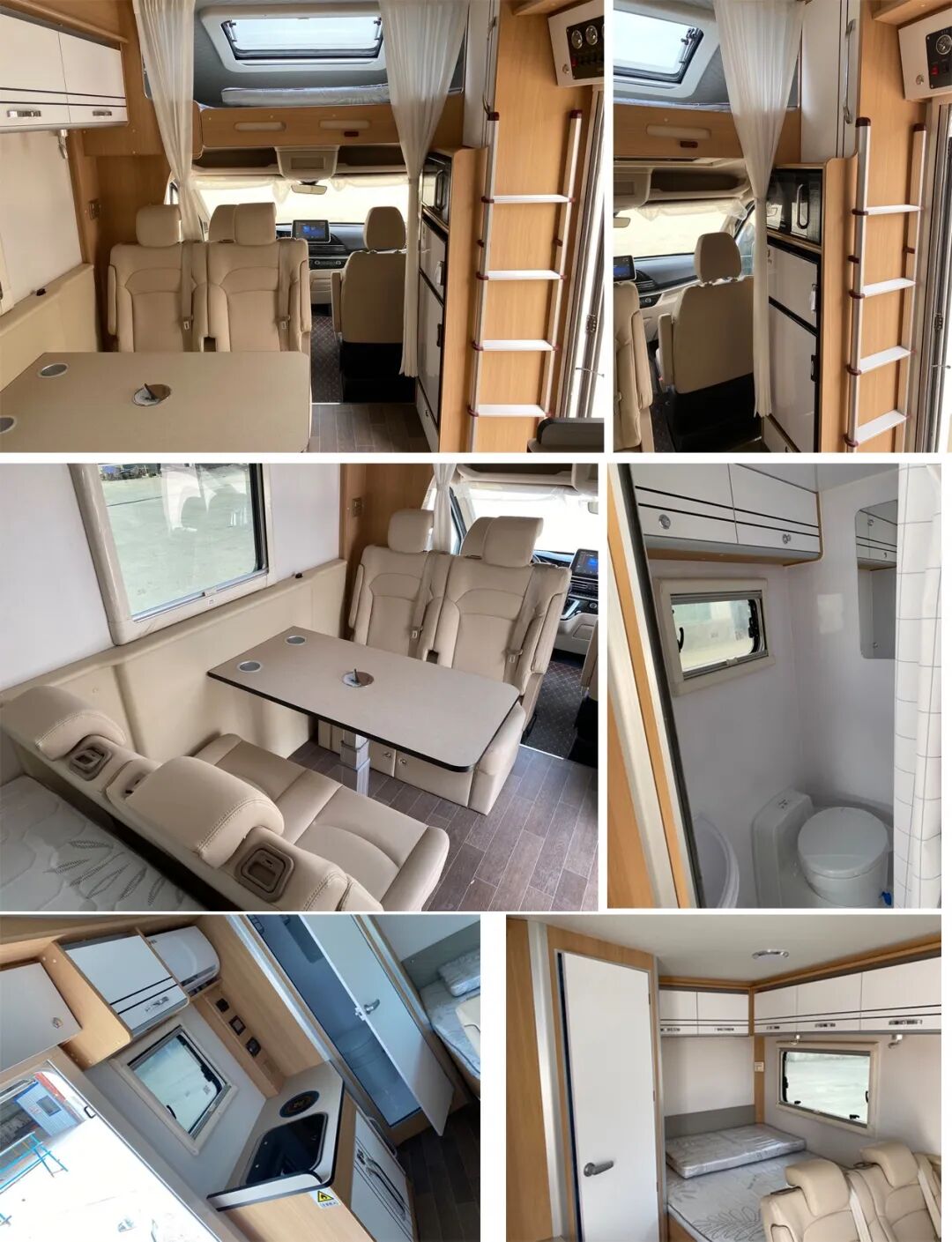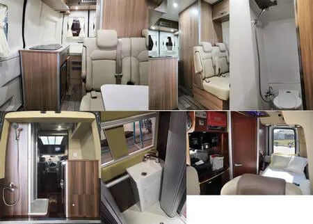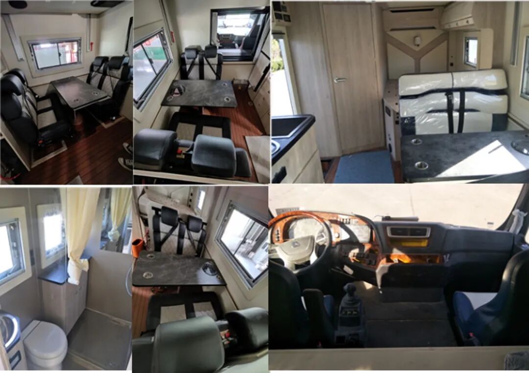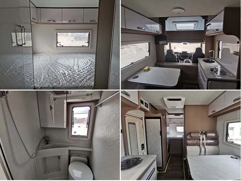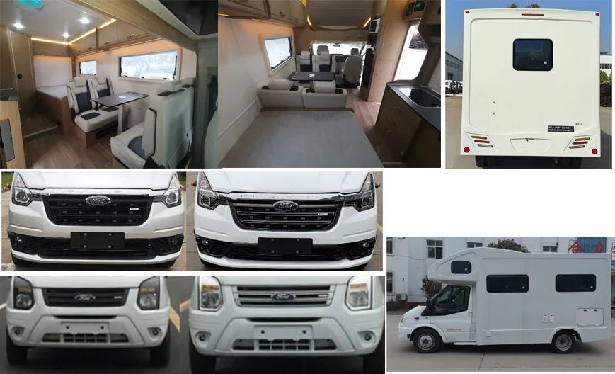 车厢内配备有桌子,床,炊事设施,淋浴设施,卫生间,储藏设施等。随底盘可选装电动侧踏步、前格栅、LED前组合灯、LED后尾灯、日间行车灯、轮圈、轮饰盖、后尾标、前雾灯、后摄像头。