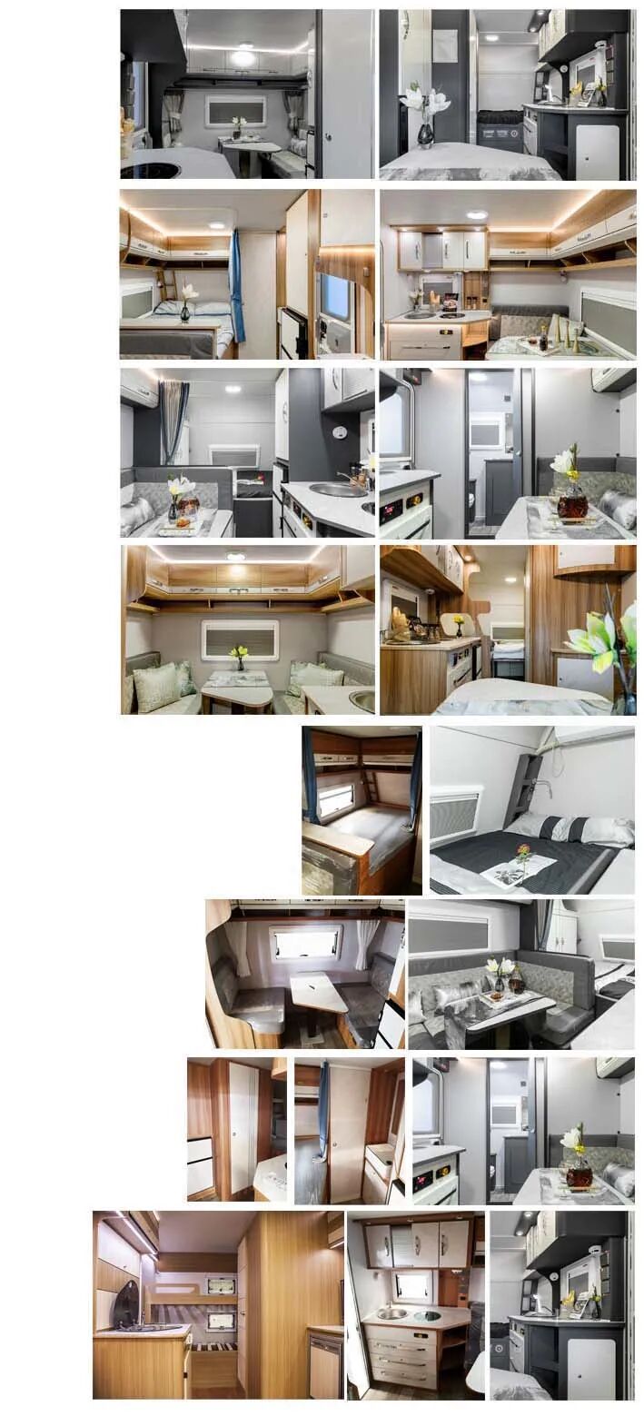 厢体内安装有床铺,桌柜,卫生设施,炊事设施及娱乐设施等,车厢顶部封闭,不可开启,牵引杆深入量为40mm,连接器最大负荷270kg,选装储物箱,选装前置空调。