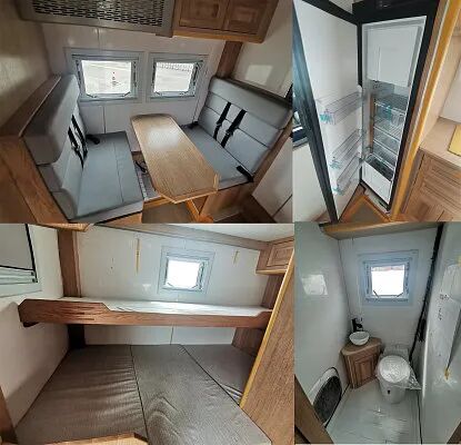 该车配备卧具、厨具、卫生、娱乐等旅居生活、娱乐设施,用于旅行宿营。车厢顶部封闭,不可开启。本车为非载客类车型,行驶过程中不载人。牵引杆深入量为60mm,连接器最大负荷100kg;