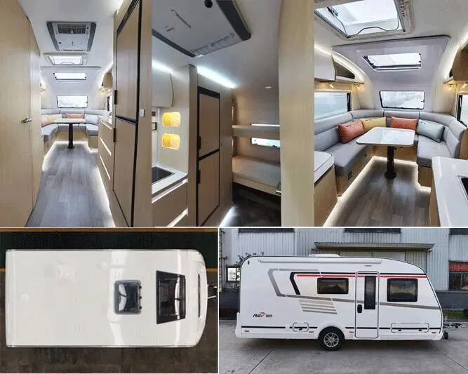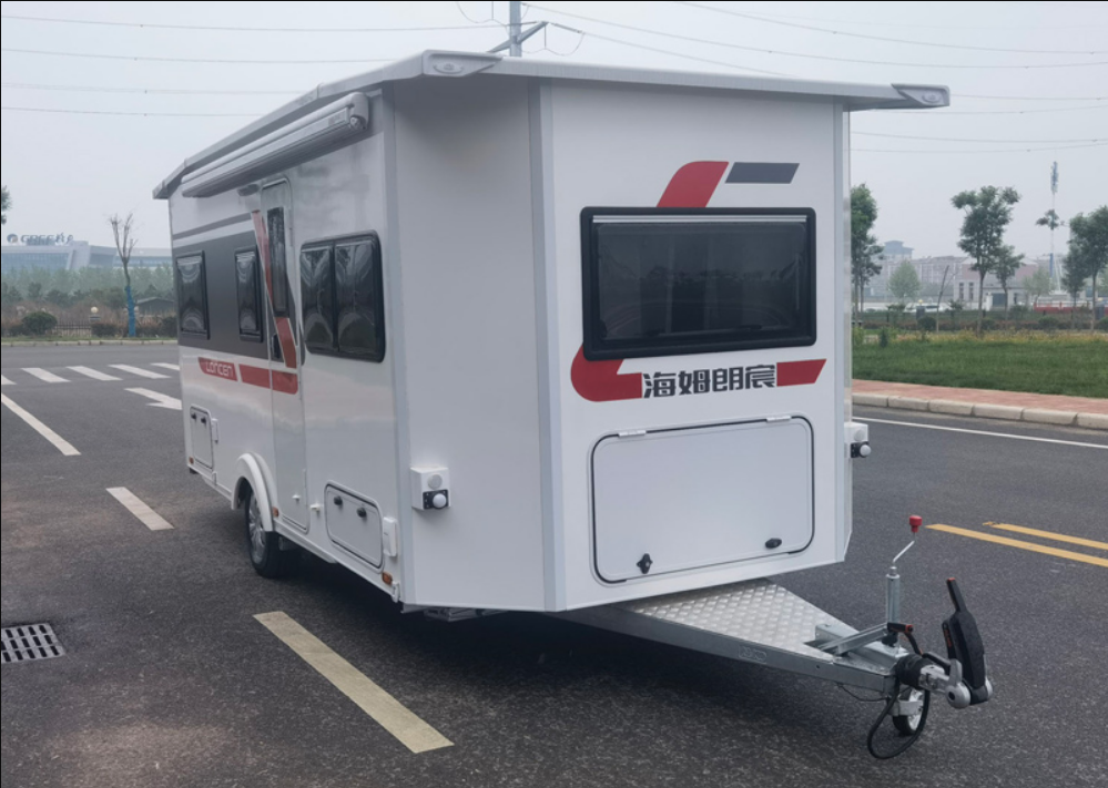 该车为非乘用车,行驶过程中不载人,牵引杆连接器最大负荷150KG,牵引杆深入量为50mm;顶部封闭,不可开启;车厢内配备床铺,沙发桌椅,炊具,卫生及娱乐设施等旅居用途的专用设备;车辆后部可选装不同型式通风口。