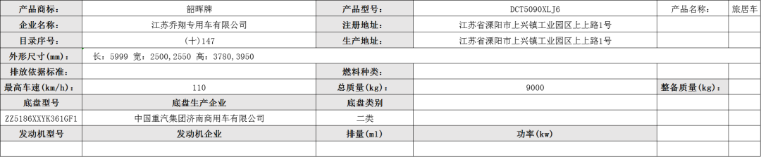 发动机净功率值:199kW;侧防护以车身结构代替,选装遮阳蓬,侧踏步,选装换气扇、太阳能板、两侧及后部选装舱门 ,厢体内部按旅居卧室布置,配置桌椅,卫生间,床具,卫浴和炊具。
