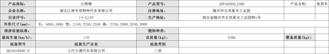 该车设有专用装置:驻车娱乐休息区,睡具,炊具,储物柜,卫生设施等设施,用于旅游和野外工作人员宿营的专用汽车;选装遮阳棚宽度2600mm,选装太阳能板,卫生间换气扇,选装顶置空调高度3950mm。
