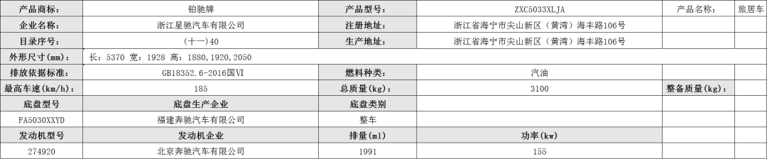 装备厨具、寝具(由座椅转换后形成)、卫生设施、储物柜等专用设备,随原车选装氙气前照灯,天窗,电动滑门,前雾灯,前格栅镀铬条,后视镜外壳颜色.发动机最大净功率:155KW。