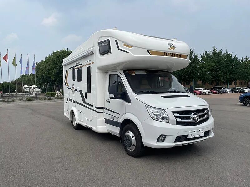 该车型配备厨具、卧具、卫生设施、供排水设施、电气设施等旅居生活设施和娱乐设施等专用装置,用于旅居宿营.车身两侧选装凸出式盲窗(车宽2095mm),该车侧后防护为裙板结构,侧防护离地高度为310mm ,后防护离地高度为370mm。