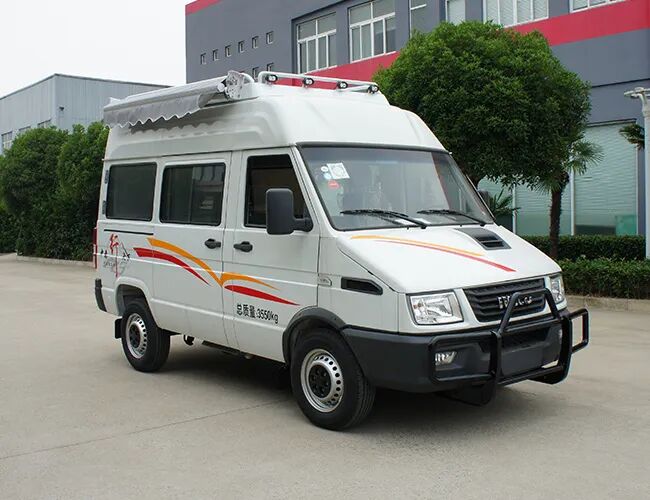 该车配备汽车事件数据记录系统(EDR);选装限速装置,选装限速装置时最高车速为100kM/h;选装一种后牌照框;厢体两侧选装上掀窗、盲窗、上车踏步、遮阳棚、外市电接口、加水口、轮罩;车顶选装车顶平台、顶置空调、换气窗、帐篷,太阳能板、围栏及场地照明灯。