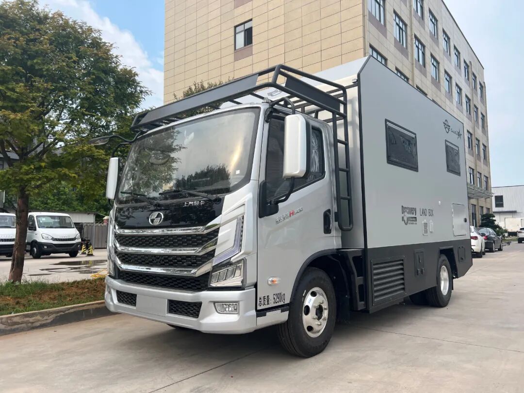 水电配备270L清水箱、100L灰水箱、48V 280Ah锂电、6000W逆变器、1000W太阳能板等。