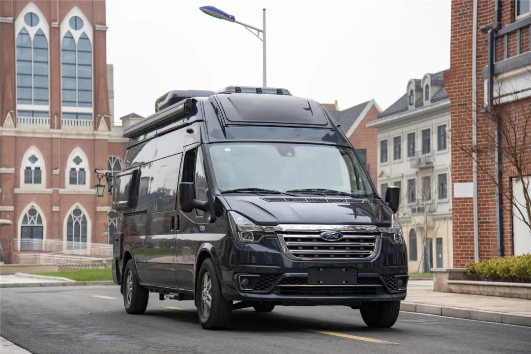 福特V348 Pro底盘打造,动力系统搭载2.2T柴油发动机,传动系统匹配6AMT变速箱,换挡平顺,传动效率高;外观以黑色为主色调,搭配大气的前脸横进气栅格,彰显轻奢时尚的商务气息;车身外尺寸5998x2098x2800mm,额定载客4人,上蓝牌,C照即可驾驶。