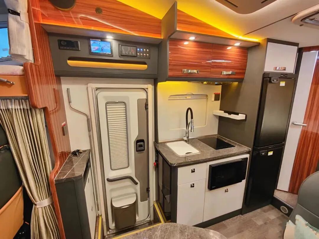 水电配备230L净水箱、70L灰水箱、800Ah锂电、600W太阳能板、3000W逆变器等。