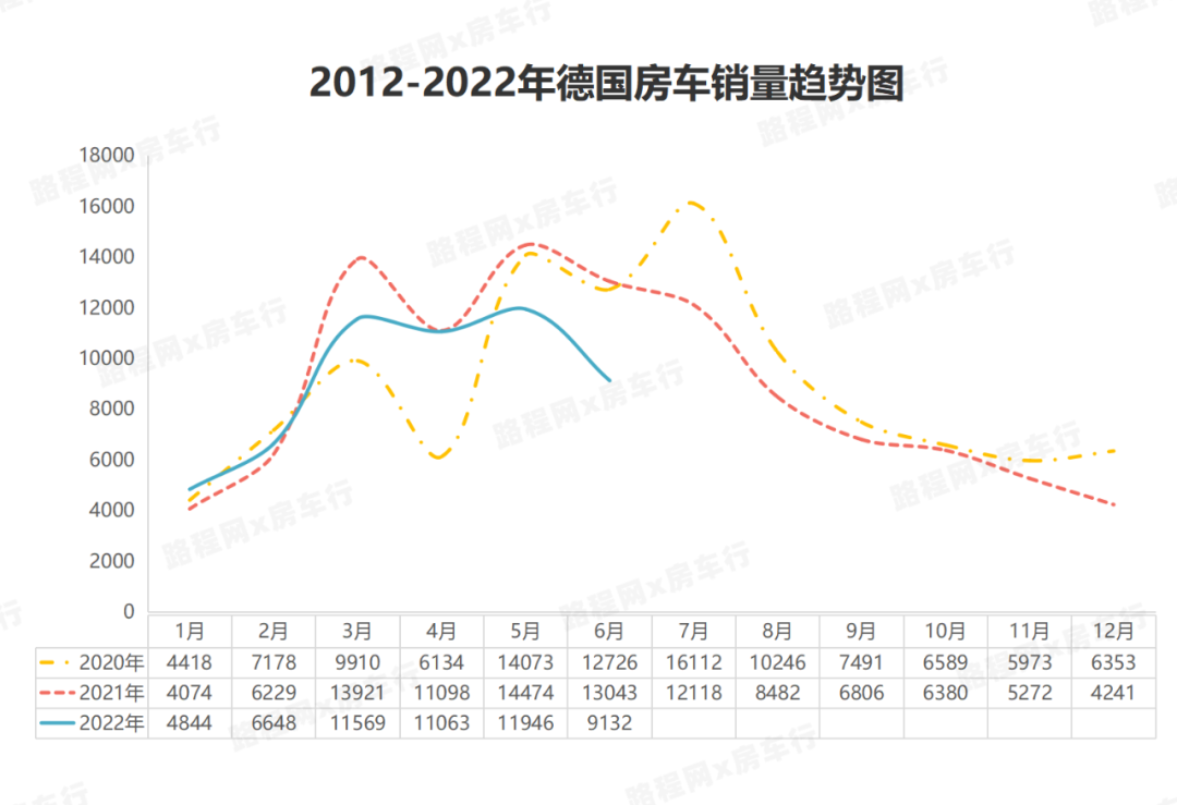 德国房车市场则是在2021年之后,继续受供应链紧缩影响,虽然对于房车依旧有着很大的需求,但产能不足导致上半年销量持续下跌;据德国房车工业协会(CIVD) 官方数据统计,2022上半年,德国新注册房车55202辆,相较2021上半年62839辆同比下降12.2%,但仍保持着德国房车行业历史第二的好成绩。