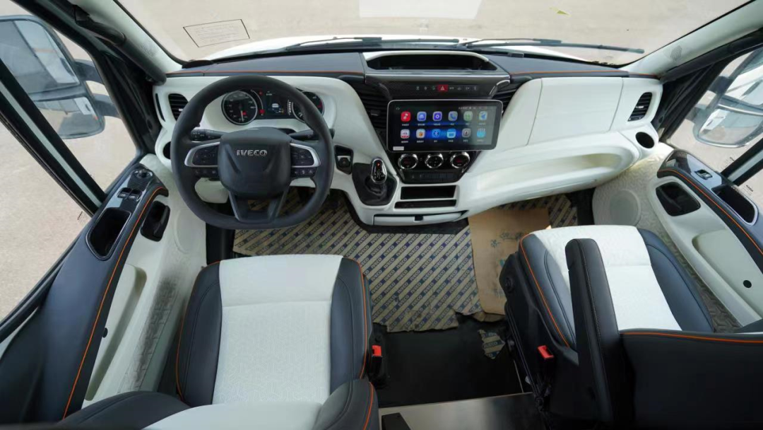 整车基于进口依维柯New Daily底盘打造,搭载3.0T柴油发动机,匹配采埃孚8AT变速箱,最大功率180马力,峰值扭矩430N·m,动力充沛;悬架方面配有独立后空气悬挂,可有效缓冲路面不平产生的冲击力,驾驶体验更佳。