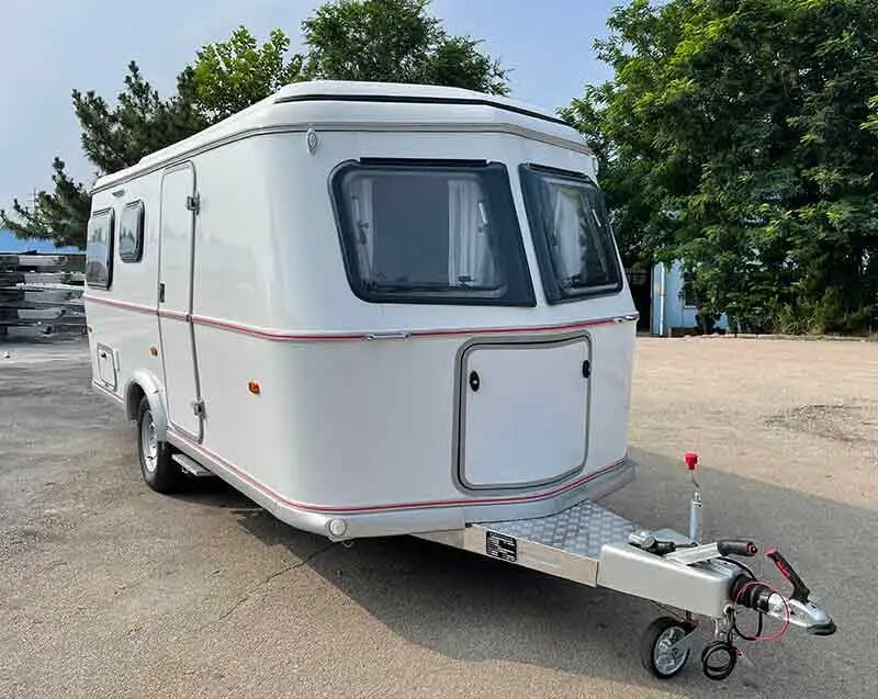 1.顶部封闭不可开启;2.顶部选装换气扇对应高度2535mm,太阳能板对应高度2590mm,整车高度2550mm;3.牵引杆深入量60mm,连接器最大负荷150Kg;4.该车为非乘用车,行驶状态中不载人;5.厢体内安装有床铺、桌柜、厨具、卫生设施等旅居专用设备;6.车身采用裙边结构为铝制材料(QN-50P),后防护离地高度465mm。