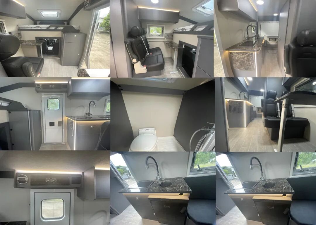 1、车辆的旅居系统安装有车载冰箱、橱柜、旅居卧具、外接电源、遮阳棚、整体卫生间等旅居专用装置为乘员提供旅居、娱乐与休闲;2、选装侧面车窗、舱门、车门与车身左、右侧遮阳蓬;车辆后部选装或不装后窗、后舱门;3、车顶选装天窗、顶置空调、顶置排风扇;4、选装脱困板时车辆宽为2180。