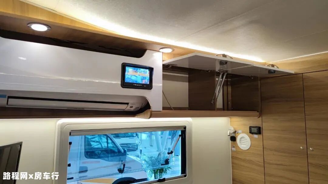 这款房车的驾驶室在原厂的基础上没有太大改变,主副驾驶座配备悬浮式座椅,乘坐舒适,可有效降低久坐疲劳,副驾驶还可旋转,方便与后方空间交谈;行车方面配备有胎压监测、10.1寸中控屏、车道偏离预警LDWS、多功能方向盘、ABS刹车防抱死、定速巡航、ESP9.3、导航倒车影像系统等辅助驾驶。