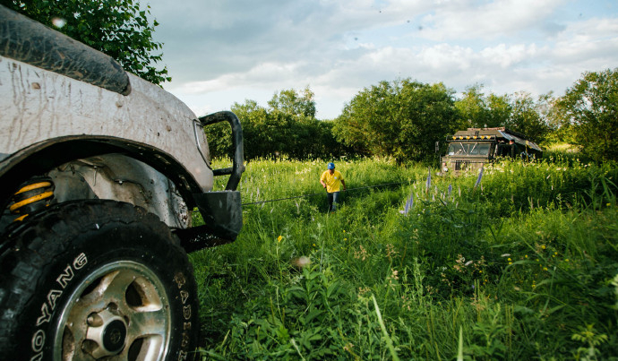 可谁知没过两分钟,66 又陷进泥潭里了。这下可把我们吓坏了。总共两个皮卡怎样才能把这大家伙拉出来?最后我们有经验的穆老师想出了一个终极办法:把牵引绳绑在树上,再由两辆小皮卡从两头使劲儿,终于成功了!那一刻的高兴,激动,兴奋是我在自驾游途中很少能体验到的......