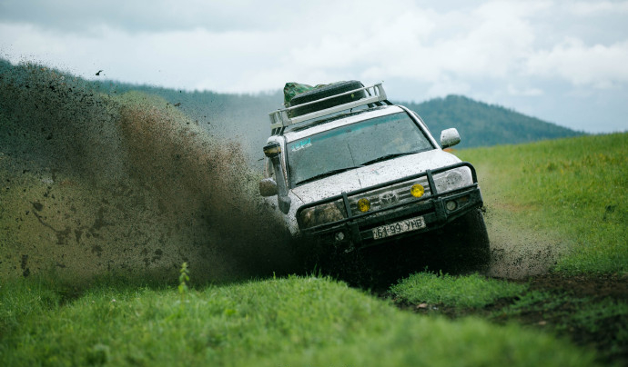 穿过这片树林后,所有人都异常地兴奋,Zoloo 也兴奋到见着水洼就冲进去,泥水盖住了我 们的车窗,甚至都崩进了天窗,切身体验到了山间的速度与激情!虽然今天的行程远远超过了 10 个小时,但却一直兴奋不已,最后也是心满意足睡了。