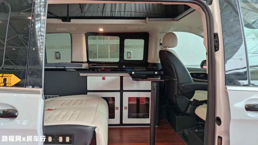 可升顶的奔驰房车是什么样子,今天小编就来带大家了解一下,这款由智点房车推出、南京房车展登场亮相的——智点奔驰环游者旅行款升顶房车,采用奔驰底盘,车顶设置了升顶机构,通过性能优异,升顶后还可以组成床铺,解决户外旅行睡眠休息的问题,整车还经过隔音隔热处理,旅行居住更舒适。