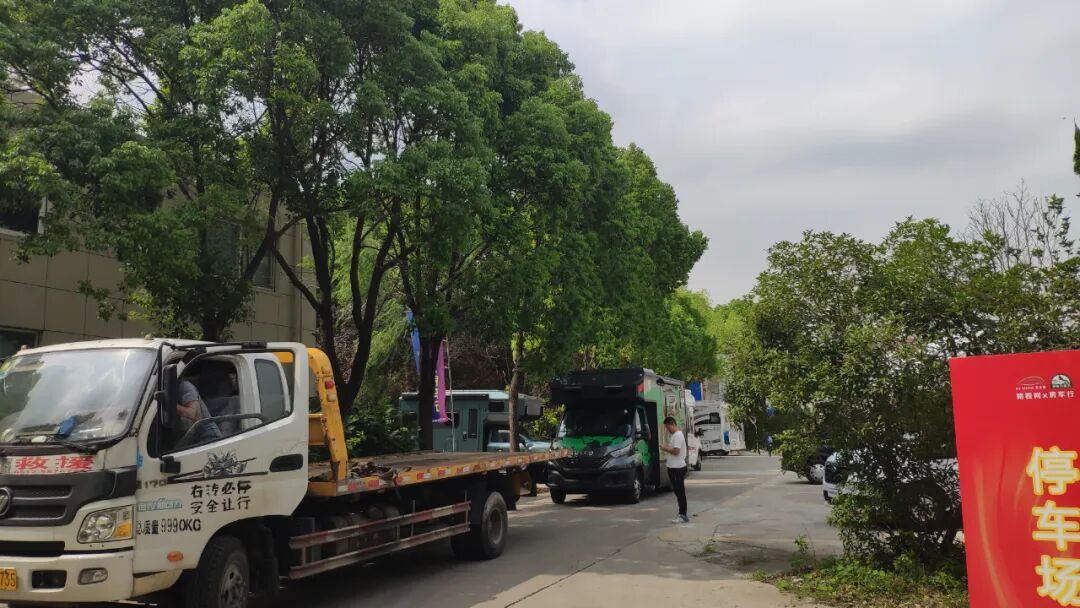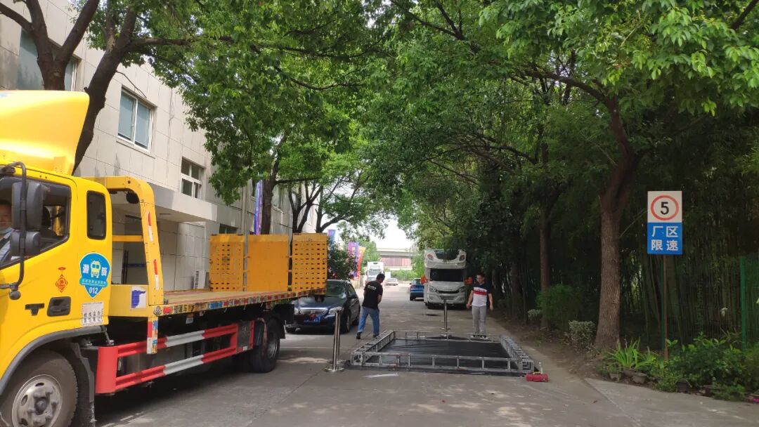 活动车型陆续抵达活动场地,现场桁架也在加急搭建中......