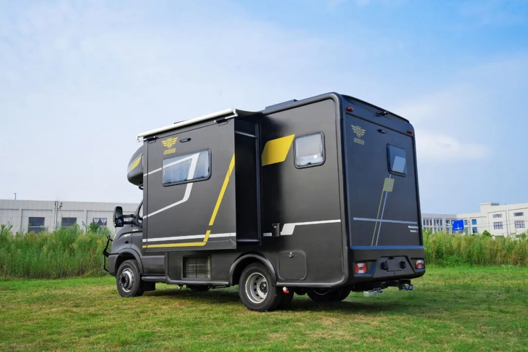 户外设施方面配有3.5m菲亚玛户外遮阳蓬、豪华舱门、隐形纱门、防风闭门装置、户外插座、户外照明灯、电动伸缩踏步、自吸加水系统、户外淋浴装置、房车专用水管、新能源取电装置等设施,保障旅行生活所需。