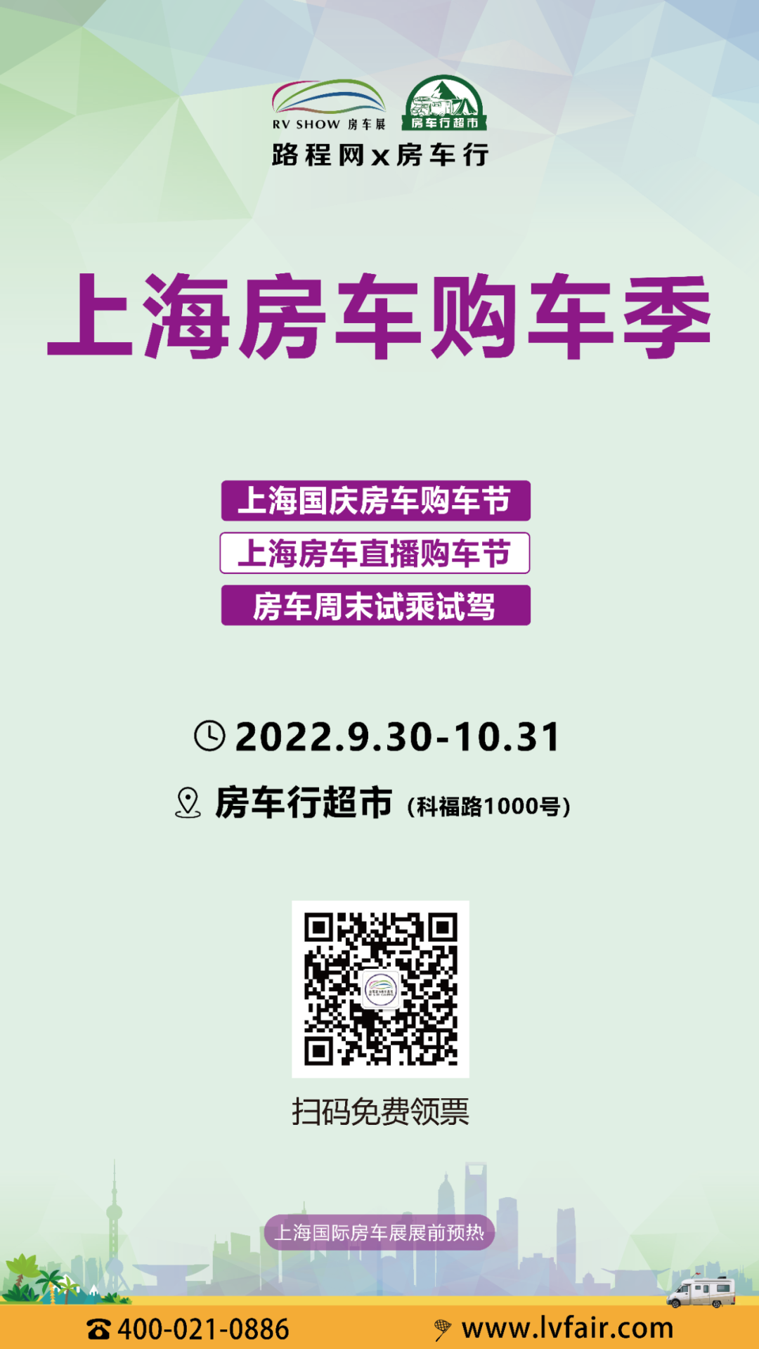 为弥补2022年上海、北京线下大型房车展会缺席的遗憾,探索“大环境”低迷背景下房车零售新模式,同时也为了给第十六届上海国际房车展预热,方便大家在等待展会的时间里可以尽情尽兴看房车、选房车、买房车,由路程网x房车行主办的上海房车购车季首阶段主题活动-上海国庆房车购车节即将于9月30日-10月7日在房车行超市(上海)重磅来袭。