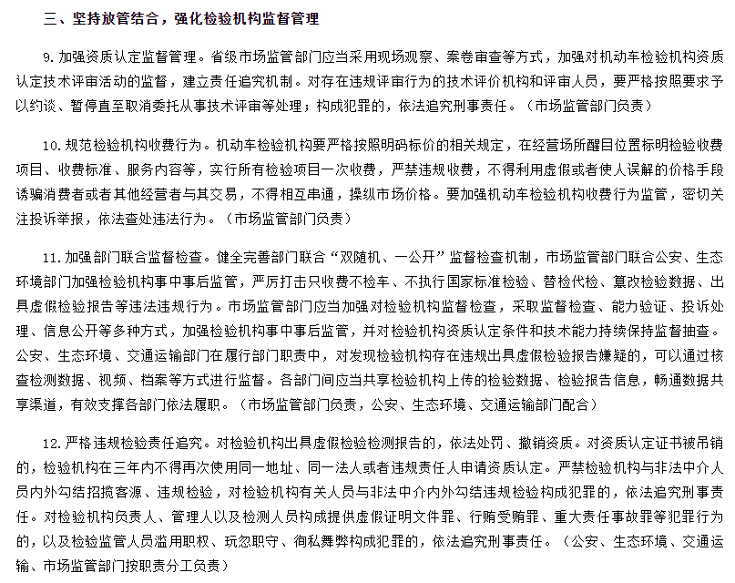 此部分内部主要有:加强对机动车检验机构资质认定、规范收费及标准检验的监督管理,对违法乱纪行为依法追究,严肃处理。