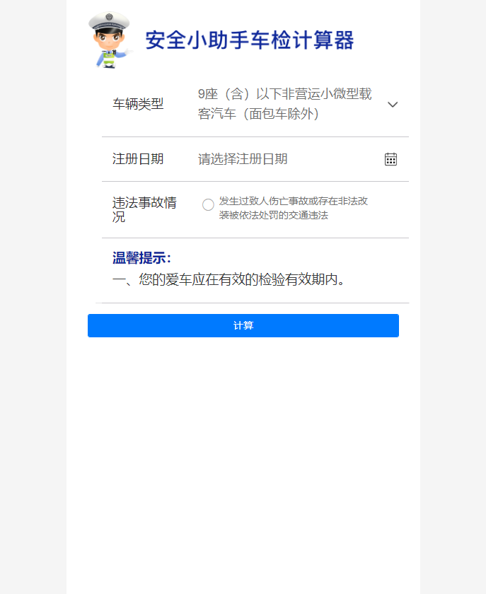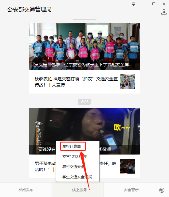 不过在新措施实施后,广大车主可以登录“交管12123”APP,查询本人名下机动车的检验有效期。同时,为便利群众查询检验日期,公安交管部门设计了“车检计算器”小程序,大家可以登录公安部交通管理局微信公众号,按照车辆注册登记时间查询检验周期。