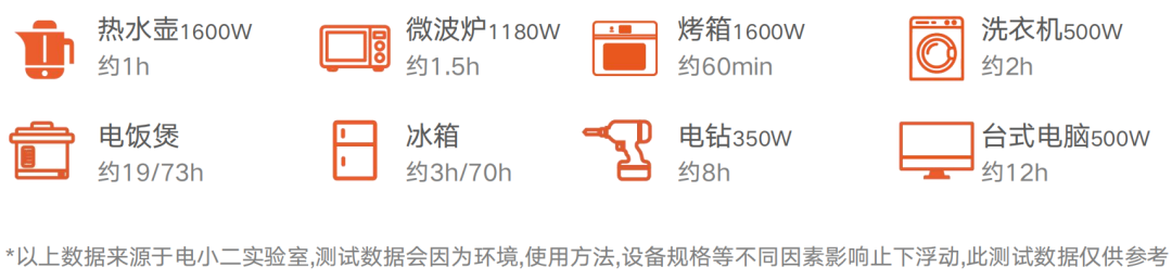 3、供电时间计算(不带电池设备,如:电风扇、电饭煲等):点能量*0.8/设备输出功率