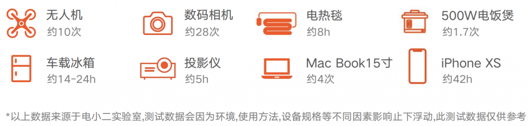 示例2:50瓦时的笔记本(边充边用):1000Wh*0.5/50Wh≈10次
