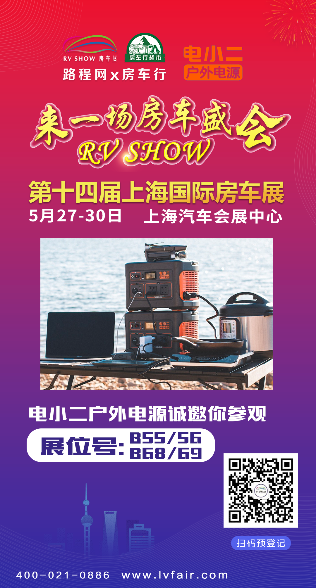 更多关于电小二的信息可持续关注路程网x房车行,当然电小二户外电源也将亮相于5月27-30日在上海汽车会展中心举办的第十四届上海国际房车展,欢迎您来B55/56、B68/B69展位咨询。
