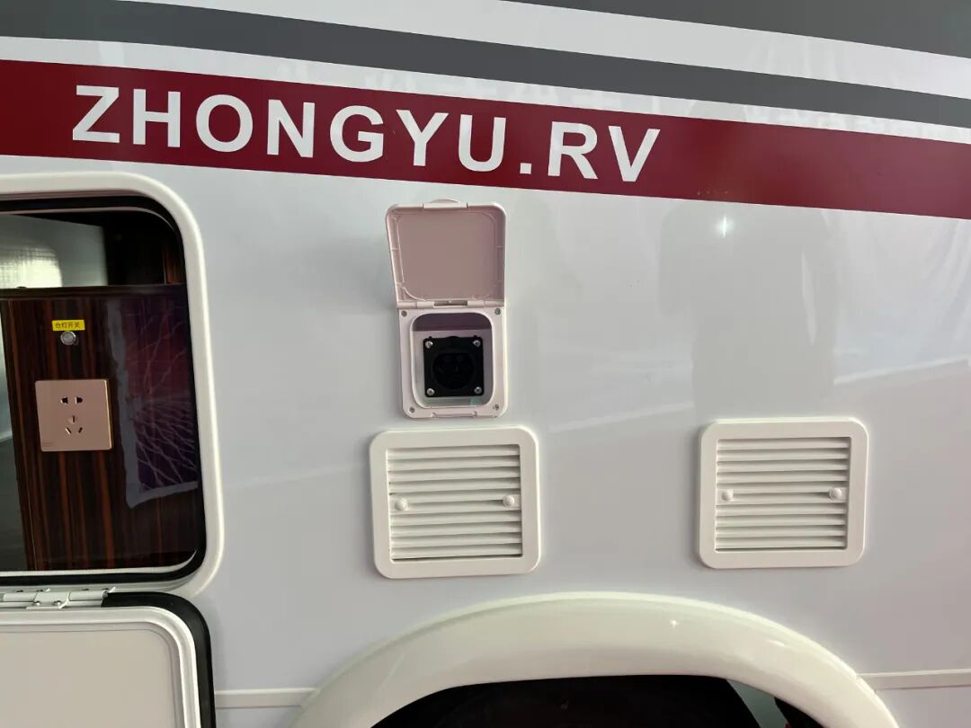 车身外侧的功能性配置丰富,配备有3.5m的户外遮阳棚、新能源充电口、户外淋浴装置、220V户外插座、外置两用抽拉灶等,很好地满足户外露营需求。