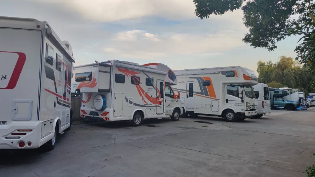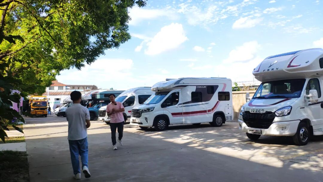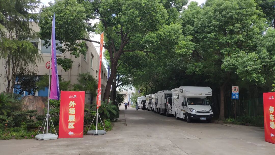 前往园区停车场的路上,部分车型已摆放到位,想必看过房车行直播的车友应该对它们很熟悉了吧......