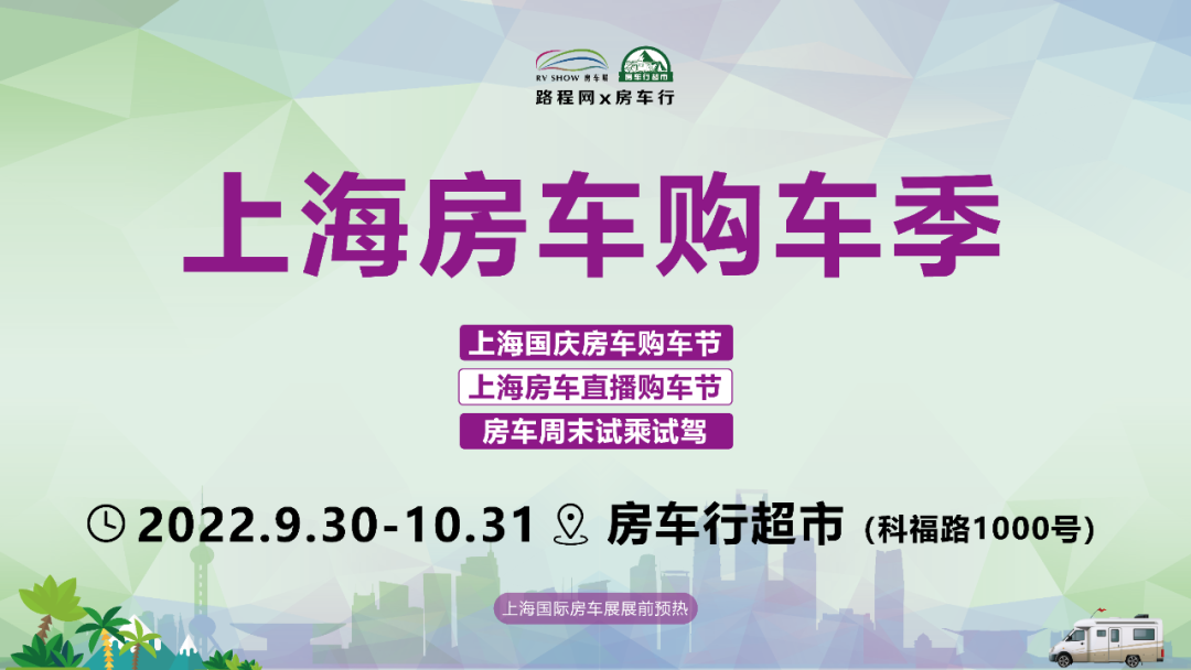 为了更好的给第十六届上海国际房车展预热,探索房车零售新模式,方便大家在等待的时间里也能尽情看房车、选房车、买房车,由路程网x房车行主办的上海国庆房车购车节即将于明天(9月30日)在房车行超市(上海)重磅开启,9月30日-10月7日,带你嗨购国庆黄金周,玩转不一样的看车、选车体验。