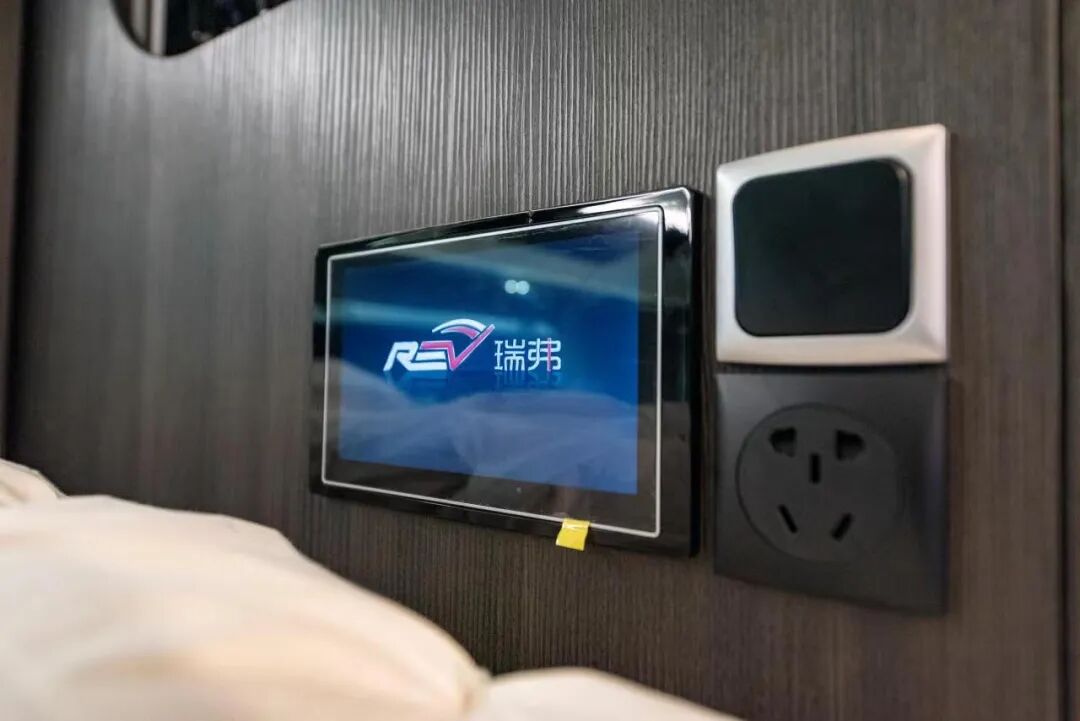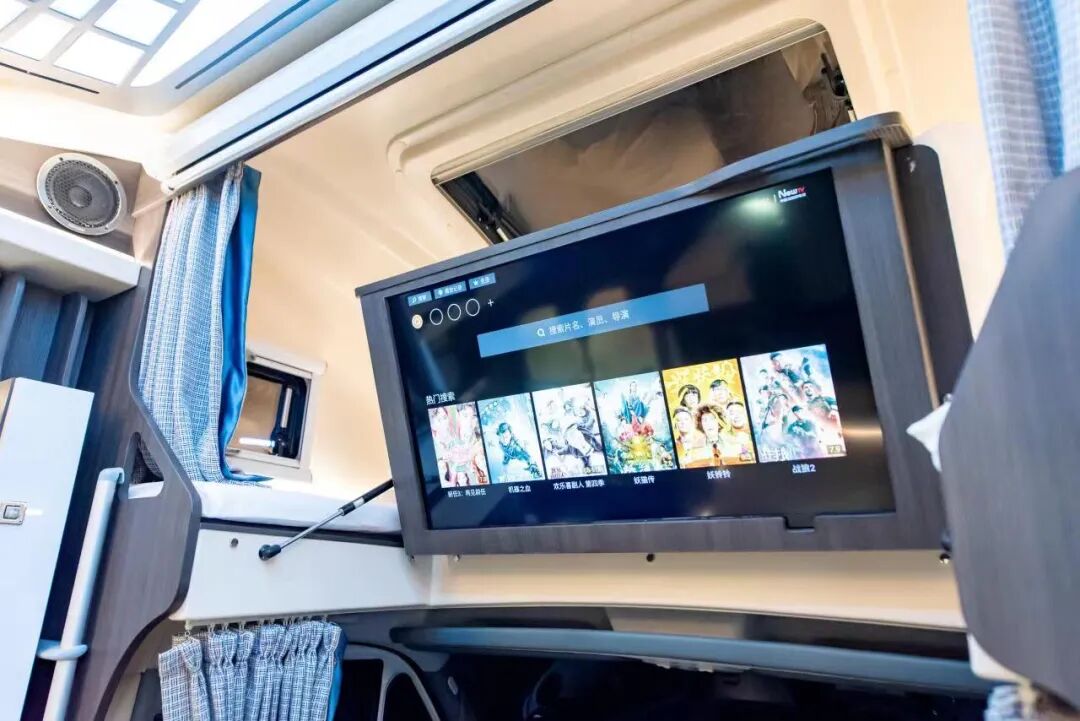 床铺下方内嵌有一台40寸智能高清液晶电视,翻转后可以尽情享受旅行观影的乐趣。